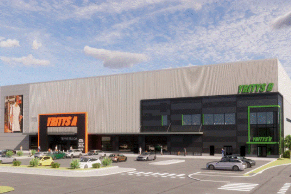 Uudiskohde, jossa 1-kerroksessa elektroniikkamyymälä Powerin liiketilat ja 2-kerroksessa padelhalli.
